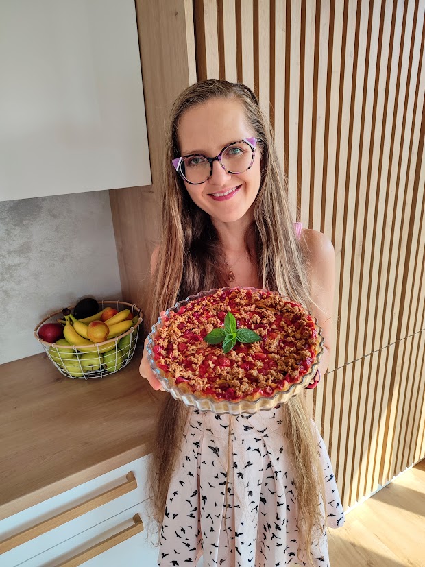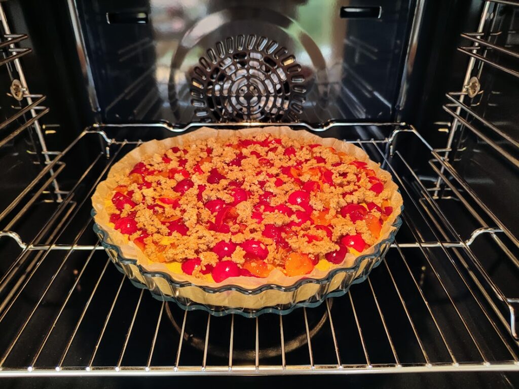 Já použila pro pečení koláčovou formu ze skla. Pokud máte také takovou, tak nepředehřívejte troubu, ať sklu nezpůsobíte teplotní šok a nerozletí se. 🫣 Dávám formu s koláčem normálně do nerozpálené trouby, aby se forma postupně zahřála. Koláč tím nepokazíte, nebojte se.