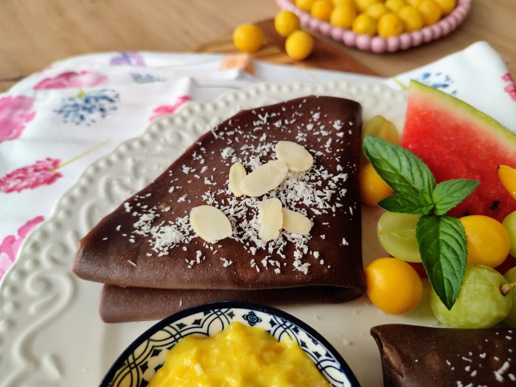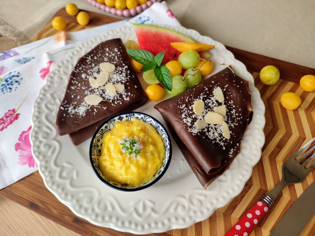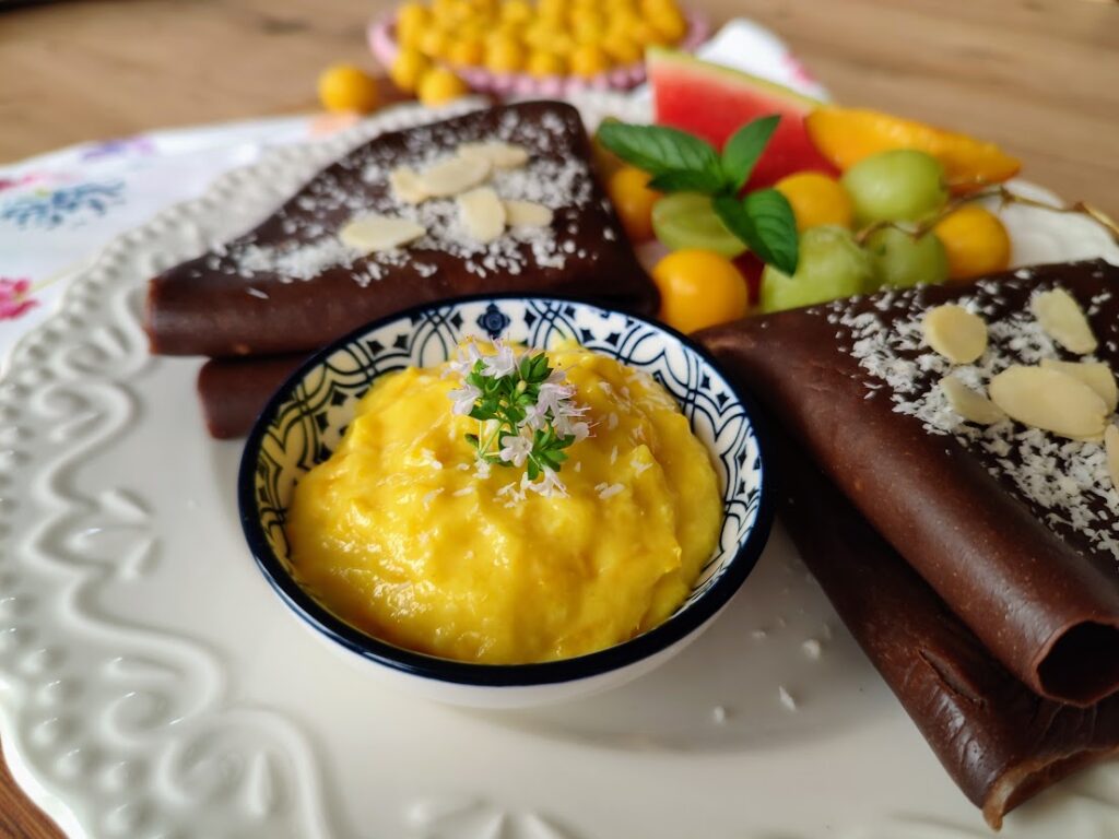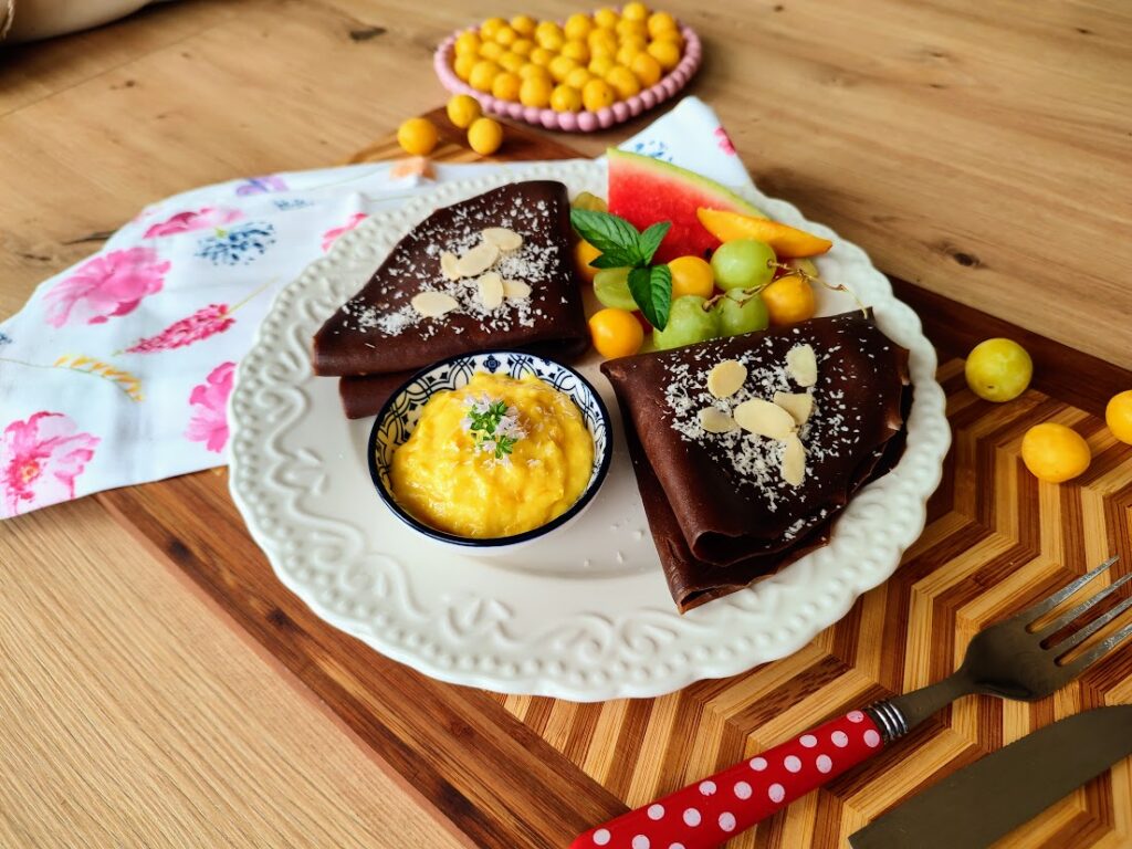 Jak udělat kakaové palačinky s mirabelkovým tvarohem krok za krokem:
