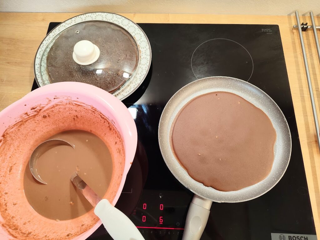 Hotové kakaové palačinkové těsto dejte zatím odpočívat na půl hodinky do lednice.