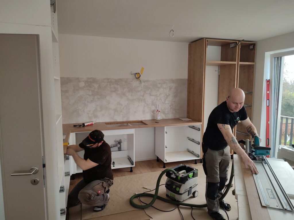 Přijel nám pán na kuchyňskou stěrku a dal vznikající kuchyni první podobu. 😍 Dva dny na to u nás byl pan truhlář se svojí partou. Pustili se do díla a už za pár hodin jsem mohla poprvé uzřít naši nádhernou novou kuchyň. Něco, co jsem dosud viděla jen na papíře, přede mnou nyní stálo v celé své nádheře. Jelikož moc ráda vařím, byl to pro mě prostě úžasný okamžik. Konečně normální moderní kuchyň… krásná nová trouba na pečení, obrovská lednice, potravinová skříň, neskutečný úložný prostor, dokonale osvícená pracovní plocha… no prostě splněný sen. Ještě k nám musel zaskočit místní elektrikář a zapojil nám varnou desku. Hmmm, to se mi to od té doby vaří!