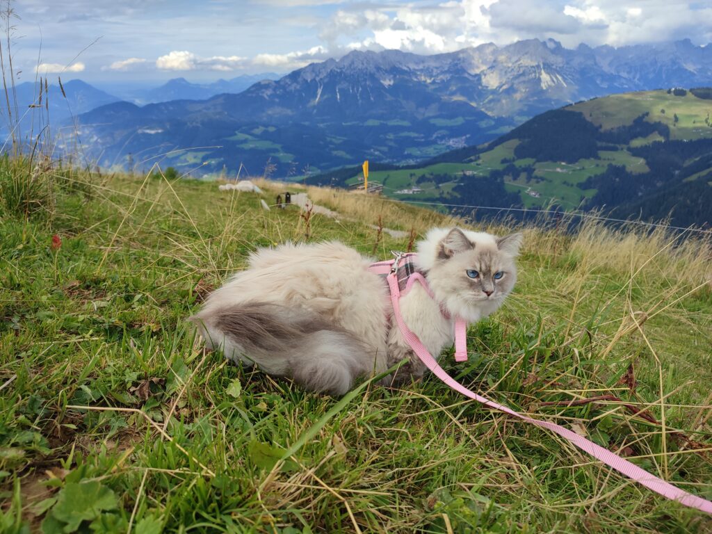 Druhá část dovolené byla v rakouských Alpách a z plážových povalečů se stali vysokohorští turisti. S kočkou. Ano, kočka chodila na túry s námi. Respektive se nosila v batohu a já to celé oddřela. 😅 Ale za ty její rozzářené modré oči na vrcholu hor to stálo!! Já se vždy směju, že ji fakt máme jak dítě. Už když mi přítel říkal, že ji přece nenecháme doma, že musí taky něco vidět a zažít, jsem bouchla fakt smíchy. 😂 Jsme prostě pošuci. A naše kočka má život, o kterém by mohla vydat knihu.